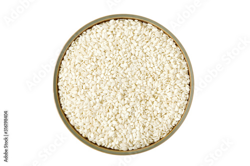Top view Sesame seeds in a bowl solated on white background.