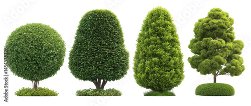 Topiary Garden Decorative Trees Collection Set on Transparent Background
