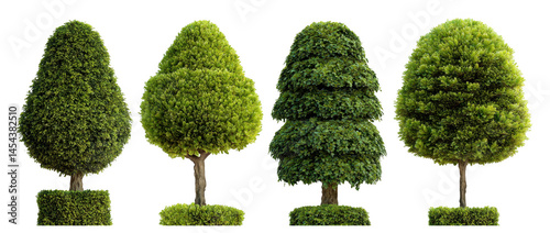 Topiary Garden Decorative Trees Collection Set on Transparent Background