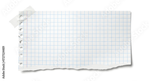 Torn graph paper sheet with tape, ready for notes, plans, or creative ideas