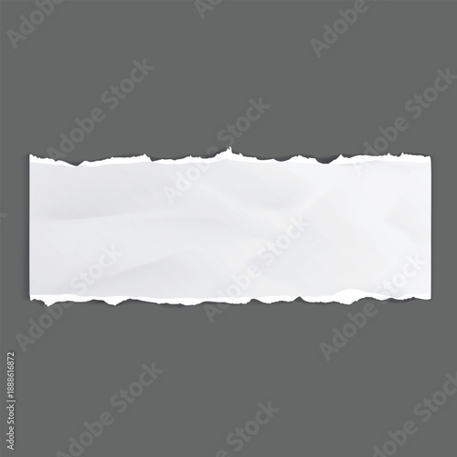 Torn White Paper Note with Tape on Gray Background, Ripped Paper Texture Frame