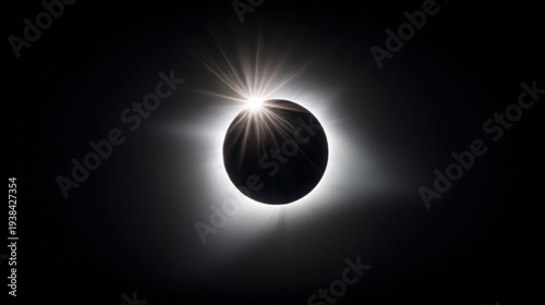Total Solar Eclipse Showing the Sun's Corona with Brilliant Rays of Light Against the Dark Moon