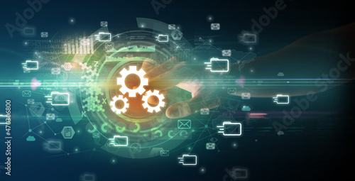 touching with soft gesture multimedia screen with future technology concept