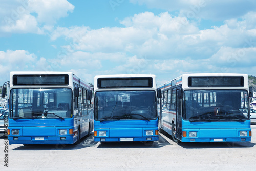 Tour buses await passengers. A Sunny summer day. Greece.