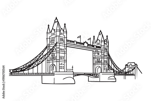 Tower Bridge London Line Art Vector | Minimal Outline Landmark Icon Set