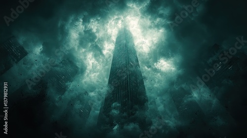 Towering city in a stormy sky