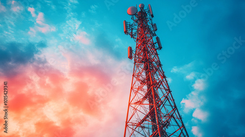 towering radio antenna stands against a clear sky, symbolizing global connectivity, communication networks, and the power of technology to bridge distances and enable the flow of information
