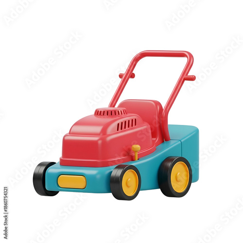 Toy Lawn Mower with Red Handle.