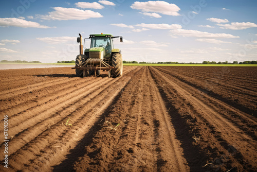Tractor cultivating the ground for planting seeds