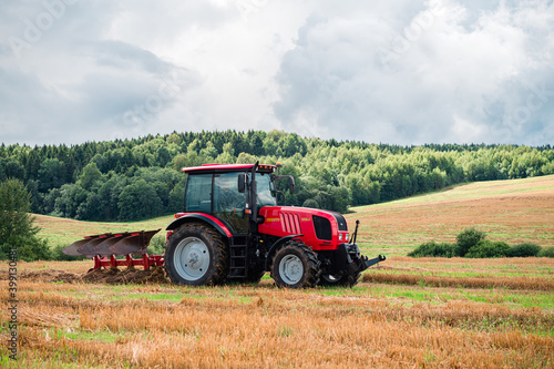 tractor plows the land