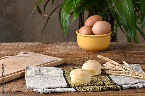 traditional baked cheese bread typical Brazilian food cheese roast with free range egg