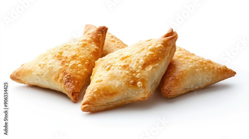 Traditional cheese bourekas on a plain white background with ample space for copy or logos, ideal for food advertisements.