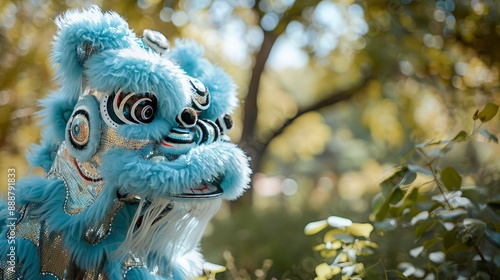 Traditional chinese lion dance costume showcased during vibrant temple performance in china