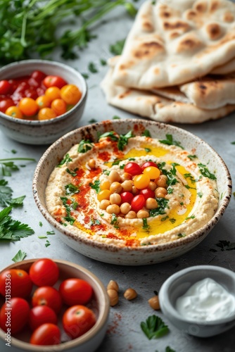 Traditional Classic Hummus on a plate. Food photography. Proper nutrition