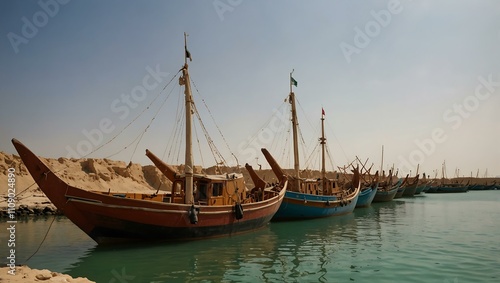 Traditional Dhow boats at a shipyard on Qeshm Island, Iran.
