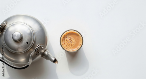 Traditional Indian Chai Kettle and Frothy Milk Tea