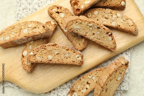 Traditional Italian almond biscuits (Cantucci) on table, closeup
