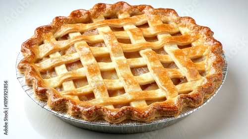 Traditional Lattice-Top Apple Pie Freshly Baked on White Background