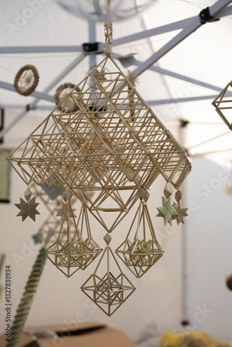 Traditional lithuanian straw ornament "Sodai" hanging at Kaziukas fair in Vilnius
