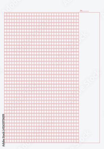 Traditional Manuscript Paper with Extended Right Margin and Dense Red Grid for Calligraphy Practice, Editable Vector Template