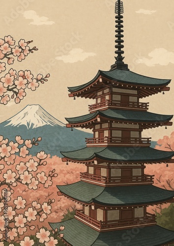 Traditional pagoda with cherry blossoms.