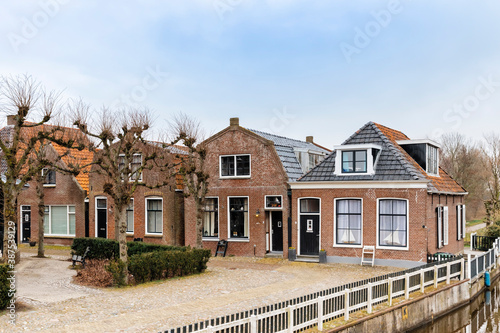 Traditional residential buildings and canal in Hindeloopen, Netherlands, Europe