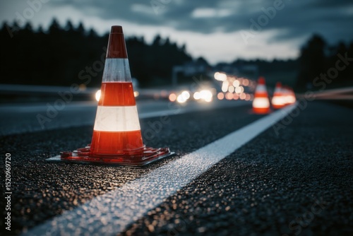 Traffic management scene with safety cones on highway evening hours photography urban environment low angle view