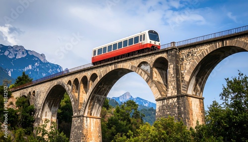 Train on a mountain bridge