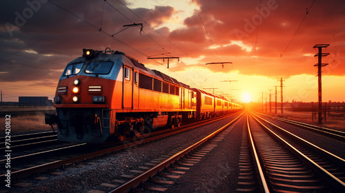 train on the railway at sunset
