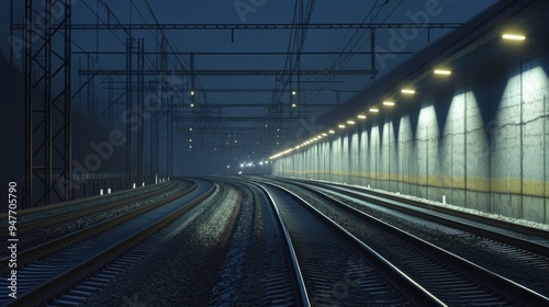 Train Tracks Tunnel Night