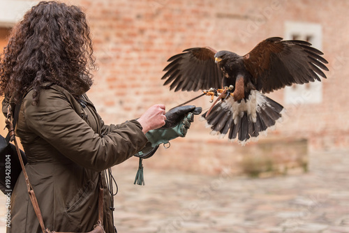 Trained red winged buzzard