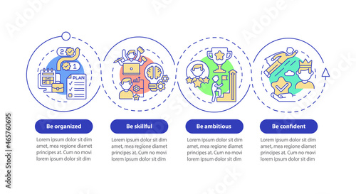 Traits for career advancement vector infographic template. Work presentation outline design elements. Data visualization with 4 steps. Process timeline info chart. Workflow layout with line icons