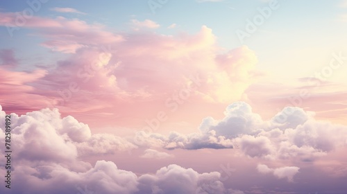 Tranquil and picturesque view of a sky filled with pink-hued clouds around sunset time, invoking feelings of romance and serenity