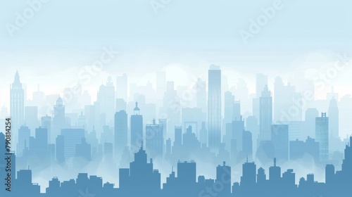 Tranquil Cityscape Silhouette under a Misty Blue Sky
