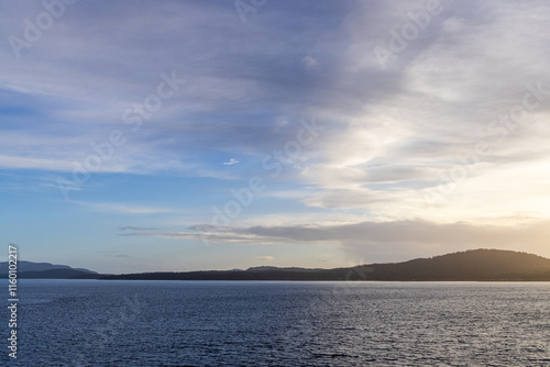 Tranquil Coastal Horizon Under a Peaceful Blue Sky at Sunset