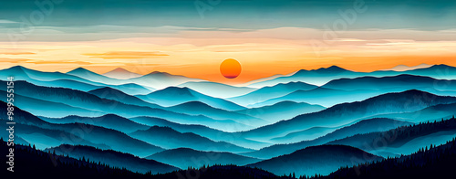 Tranquil landscape at dawn or dusk, with soft pastel colors.