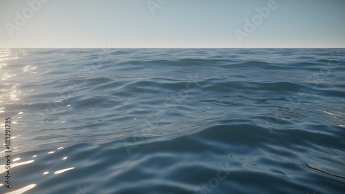 Tranquil Ocean View with Sunlight Illuminating Calm Waves and Vibrant Blue Sea