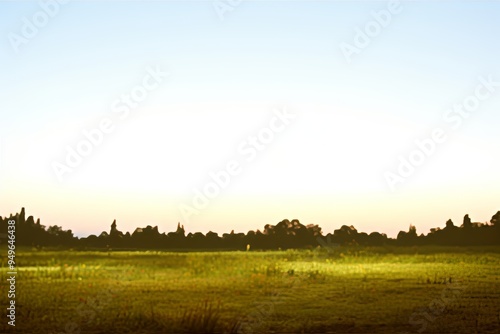 Tranquil Sunset Over a Grass Field: A Serene Landscape