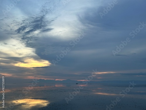 Tranquil Sunset Reflections Over Calm Ocean Horizon