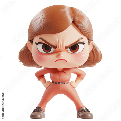 Transparent Background PNG. Angry Cartoon Girl 3D Render