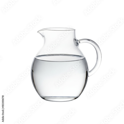 Transparent glass pitcher showcasing a refreshing clear liquid against an isolated setting