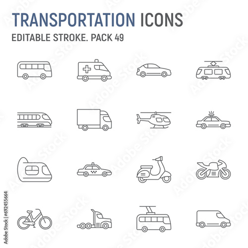 Transportation line icon set, vehicle collection, vector graphics, logo illustrations, transport vector icons, vehicle signs, outline pictograms, editable stroke