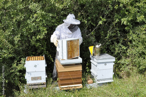 Travail de l'apiculteur au rucher