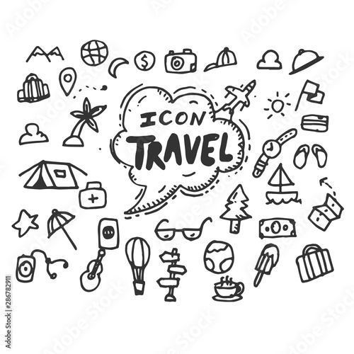 travel Set. Vector Hand Drawn on white background. icon. symbol