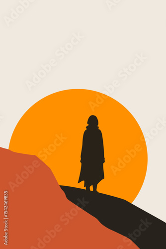 Travel, View, Leaving, Alone, Man, Woman, Hoodie, Winter, City, Sun, Stars, Mountain, Vector, Artwork