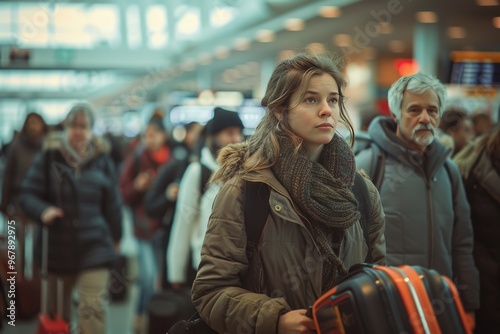 Traveler Navigating a Busy Airport