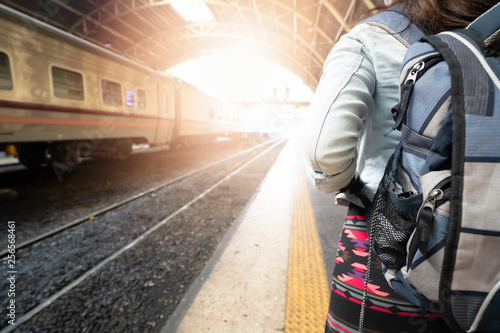 Travelers and backpacks are traveling by train.