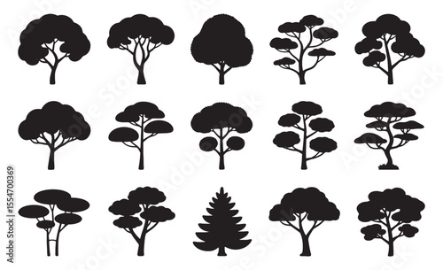 Tree Silhouette Vector Collection – Black and White Nature Trees Set