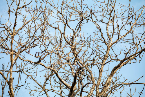 Tree texture with dry branches isolated on blue sky background