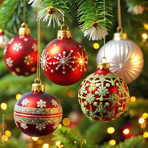 Tree with a bunch of Christmas ornaments hanging from it. Graphic, photo, vector, images, illustration, art, design, clipart, abstract, digital, tshirt, pattern, mockup, stock